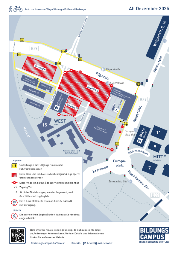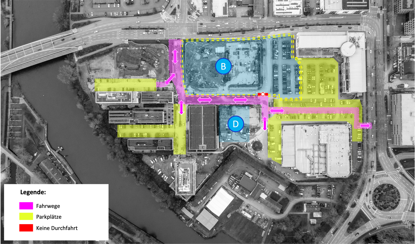 Im Zuge der laufenden Bauarbeiten im Baufeld B kommt es ab Dezember 2025 zu neuen baulichen Maßnahmen in der Edisonstraße. Um die Sicherheit der Verkehrsteilnehmer während der Kranarbeiten zu gewährleisten, wird ein Schutzdach errichtet.