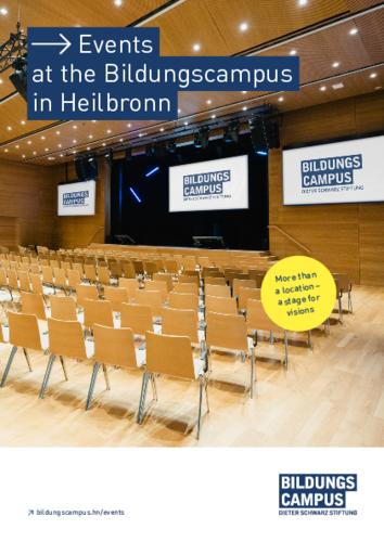 Our conferencing area is located on the top floor of the AULA, and offers a flexible room concept for professional meetings, congresses, workshops and talks. With six conference rooms and two innovative creative rooms, the conferencing area on the Heilbronn Bildungscampus offers tailor-made solutions for events for up to 400 people in a high-end, quiet working environment.